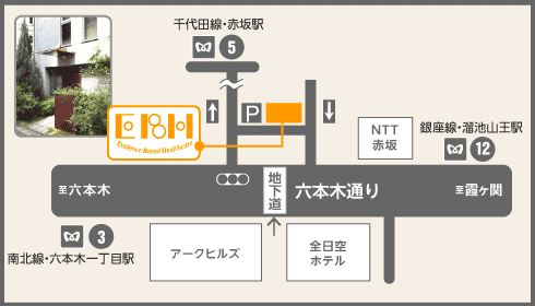 南北線:六本木1丁目駅3番出口より北東徒歩5分
